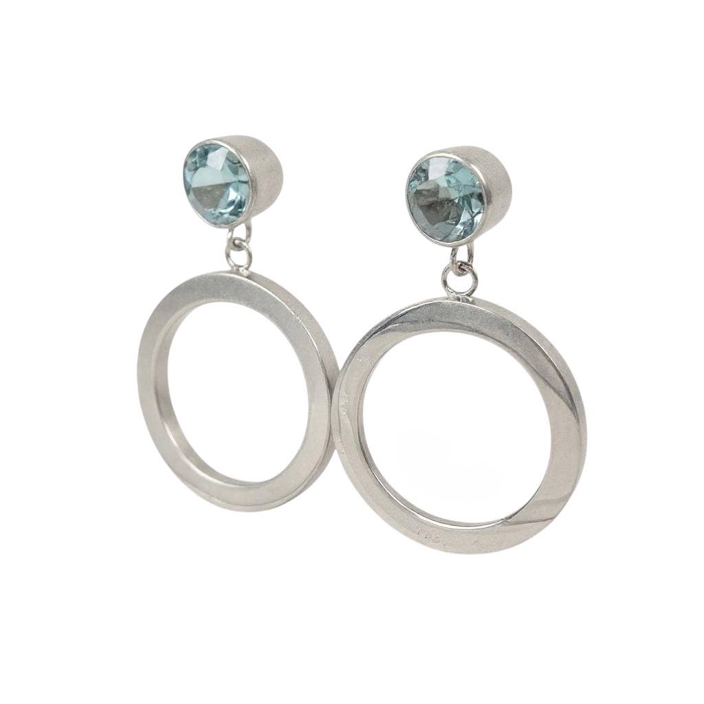 STERLING SILVER CIRCLE DROP EARRINGS WITH BLUE TOPAZ